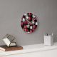 Trendy Maroon Red Black White Abstract Plaid Round Clock