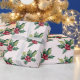 Trendy Merry Christmas Holly and Berries Pattern Wrapping Paper