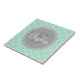 Trendy Mint Trellis Pattern Grey Monogram Tile