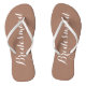 Gift your wedding bridesmaids with these stylish bridesmaid flip flops that are trendy mocha brown colour along with white, stylised script to complement your similar wedding colour scheme. Select foot size along with other options. Available in many, popular bridesmaid wedding colour schemes.