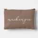 Trendy Mocha White Script Personalised Name Accessory Pouch.