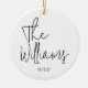 Celebrate your special day in style with this modern black and white ceramic ornament, featuring elegant script lettering for a sophisticated and timeless look. Perfect for commemorating your wedding day or gifting to newlyweds, this ornament can be personalised with your names and wedding date, making it a memorable keepsake. The minimalist black and white design adds a touch of class to any holiday decor, making it a stylish addition to your tree or as a thoughtful gift for anniversaries or first Christmas celebrations.