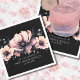 Cute and simple pink, black and white flower wedding design. A classic but whimsical look with pink, black, grey and cream coloured flowers with grey fonts and modern lettering. Edit all of the text to your own information. Great for a boho wedding with a modern twist, a winter or spring classic affair, or even a bit of a gothic vibe. Trendy Chic Modern Floral Black Pink Wedding Napkins