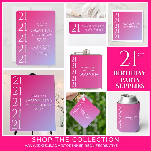 Trendy Modern Bold Pink Gradient 21st Birthday Invitation