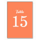 Trendy Modern Coral Pink Orange Wedding Table Number