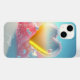Trendy Modern Girly Love Heart Personalised Name iPhone Cases features your personalised name in white script typography on a modern girly romantic love heart background in colourful pink, blue and yellow. Perfect gift for her for birthday, girlfriend for Valentine's Day, mum for Mother's Day, sister or bestie for Christmas and holidays. Designed by ©Evco Studio www.zazzle.com/store/evcostudio