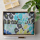 Fun and vibrant leopard (or cheetah) animal print. Colours are bright lime green, blue, black and turquoise.