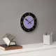 Trendy and stylish kitchen wall clocks in purple yellow and black with classy clock face number markings that add a touch of class to the design.