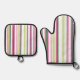 Trendy Modern New Pink Green White Stripes Oven Mitt & Pot Holder Set
