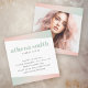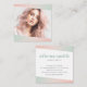 Modern, trendy, square photo business cards or personal profile cards with a pink to mint green gradient. Customisable name, title/company name and contact information on the back and photo on the front.