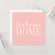Trendy, minimalist, modern, simple, pastel pink, welcome home greeting card.