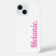 Trendy Modern Pink White iPhone Case. Personalise with your custom name.