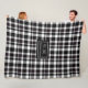 Trendy Modern Plaid in Grey Hues Monogram Throw Fleece Blanket