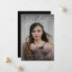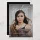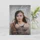 This Modern Simple Script Two Photo Graduation Announcement features a full size photo on the front with white text overlay and a back photo with optional details.