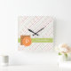 Trendy Monogram Dotted Stripes With Name Square Wall Clock