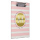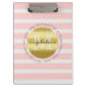 Trendy Monogram Gold Glitter Blush Pink Stripes Clipboard