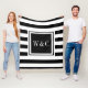 Trendy Monogram Modern Black White Stripe Fleece Blanket