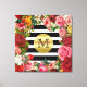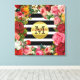 Trendy Monogram Stripes Roses Flowers Gold Glitter Canvas Print