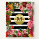 Trendy Monogram Stripes Roses Flowers Gold Glitter Notebook