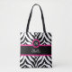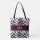 © 2016 Socialite Designs. Sassy and chic zebra stripes and hot pink lace customisable tote for your everyday use. Add your monogram and name to the design to make it personalised.