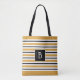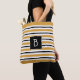 Trendy Monogrammed Yellow , Black & White Stripe Tote Bag