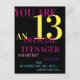You Are 13 - Official Teenager Birthday Card. Coloured in yellow, pink, dark pink purple and light blue and dark blue on the other side.