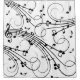 White design with curly music bars and dancing quarter notes