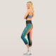 These cool trendy capri leggings, perfect for the sport enthusiast who loves a minimalist design have a sleek dark teal gradient on the front and a vibrant orange gradient on the back, these leggings are as stylish as they are functional.