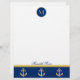 Customised Letterhead: Modern Nautical Design/Gold Anchors Pattern/Navy Blue Background/Gold Accent Bar and Initial Monogram