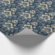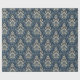 Vintage style design for wrapping paper features classic navy blue and beige ornamental damask.