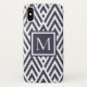 Trendy Navy Blue Monogram Arrow Diamond Pattern Case-Mate iPhone Case