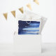 This wedding favour bag features a stunning watercolor navy blue brush stroke design. The gradient effect shifts from deep navy blue to lighter blue tones, adding a sense of elegance and depth. The design includes the words “Thank You!” in elegant, flowing script, along with the names of the couple and the wedding date, creating a personalised touch. This modern and artistic design makes these favour boxes perfect for a stylish and memorable wedding celebration.