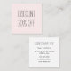 Modern, professional, simple trendy, black, white and pastel pink, minimalist discount card with handwritten font. Available in different colours - see colour options.