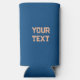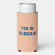 Trendy Peach and Blue Colours Minimal Personalised Can Cooler. Two different colours, on front of the can cooler is peach colour and on back is blue colour. This minimalist style is a perfect choice for company merchandise, company campaign, promotional giveaway or for client gifts. Just add your company slogan, custom text, company name/logo, client names or any other texts on the front and back of the can cooler to suit your needs. You can have the same message or two different messages (front and back).