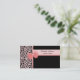 A modern and trendy peachy pink and black leopard print wedding planner business card with a cute, girly ribbon tied into an elegant bow. A fashionable animal pattern design to advertise your services as a certified wedding coordinator. Flat printed image, not actual bow.