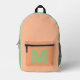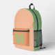 Trendy peach colour and sage green with Monogram name Printed Backpack. Create a unique and personalised backpack with a custom touch! Select a font and colour scheme that suits your style, arrange everything in a visually appealing way using editing tool.