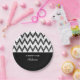 Trendy black and white chevron pattern paper plates with girly hand drawn coloured pencil black chevrons. Personalise this modern and stylish black and white zigzag design by adding the name of the party girl.