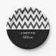 Trendy Pencil Black and White Chevron With Name Paper Plate