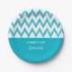 Trendy turquoise and white chevron pattern paper plates with girly hand drawn coloured pencil turquoise chevrons. Personalise this modern and stylish aqua blue zigzag design by adding the name of the party girl.