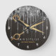Trendy Personalised Modern silver Hairstylist Round Clock