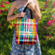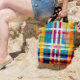 Introducing our Personalised Tote Bag, the perfect blend of elegance and summer vibes. This summer edition tote features an elegant traditional plaid design with stunning fuchsias, blues, yellows, and gold accents.