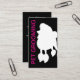 Pet services business card design template created with a puffed up poodle graphic in vertical layout with editable text you can personalise online. Designed for a pet salon, Pet Groomer or Mobile Pet Grooming local service.