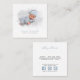 A simple, professional square photographer business card featuring your photo behind a watercolor photo mask, and trendy light blue branding. The back of the card contains all your contact information, three social media icons, and field for your username. Contact designer for matching products. Copyright Custom Photo Gifts, all rights reserved. Copyright Elegant Invites, all rights reserved.