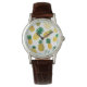 I like the illustrative watch with the lady on it. It is a great reminder that I am blessed and it has a very sturdy leather band. The colors are true and vibrant. Love the color of the Leather also. Very nice.