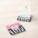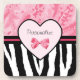 Trendy Pink and Black Zebra Pattern Bow and Name Coaster