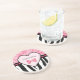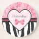 Trendy Pink and Black Zebra Pattern Bow and Name Coaster
