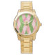 Trendy Pink and Green Gold Argyle Monogram Watch