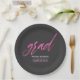 Hot-Pink and Dark Grey Graduation paper plates with handwriting typography customisable to your specifics.