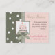 Stylish custom bakery business card done with graphics of a pretty pink cake, in the middle of a pink and a khaki and white polka dot backgrounds. Perfect for a bakery shop, party shop, or an independent custom baker. Customise the text fields to personalise for yourself or your shop.