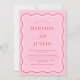 Trendy Pink and Red Squiggle Curves Wavy Wedding Invitation